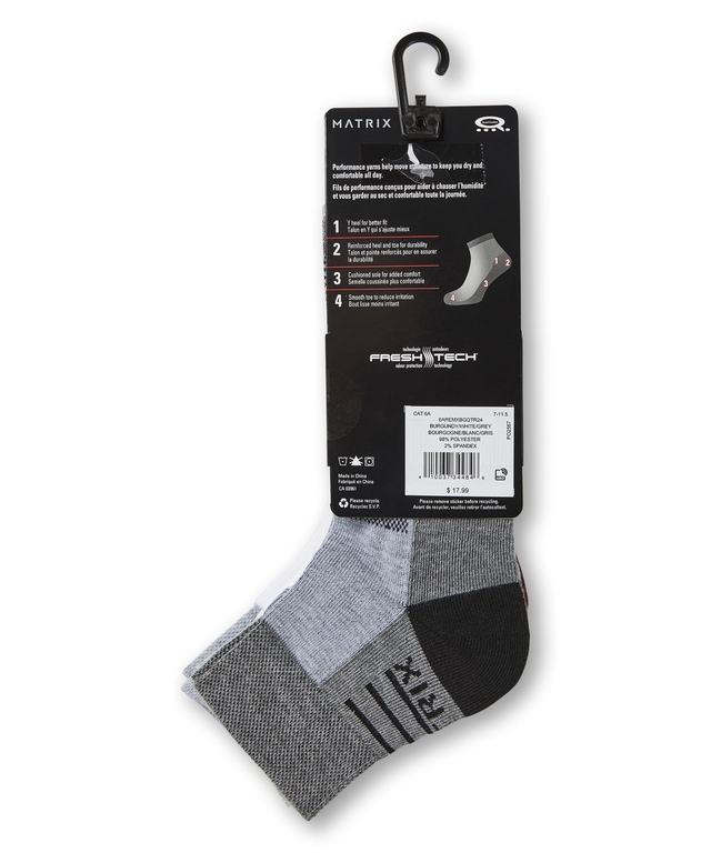 These Matrix quarter socks feature smooth toe seams and odour protection to give you a comfortable fit and prolonged freshness. They're offered in a pack of three pairs for easy shopping.