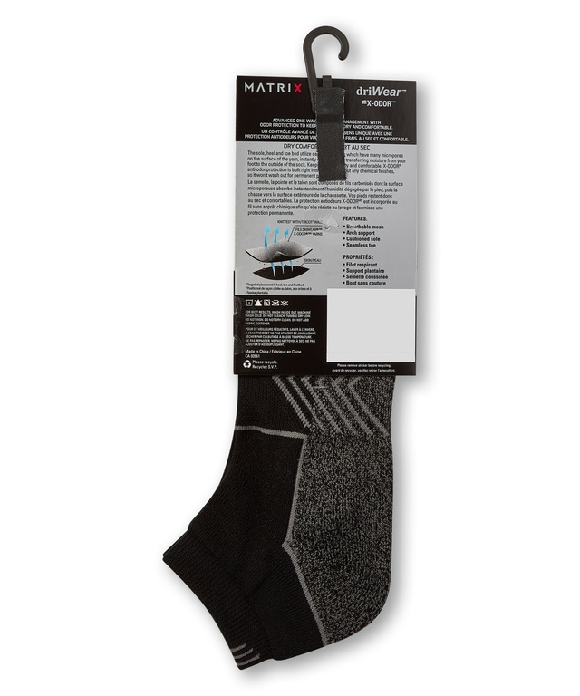 Our Matrix low-cut sport socks are ideal for wearing with your running shoes and sneakers. Offering comfort for those who spend much of the day on their feet, they have seamless toes, arch support panels and cushioned soles. The DRIWEAR™ technology provides one-way moisture management to keep your feet dry and comfortable.