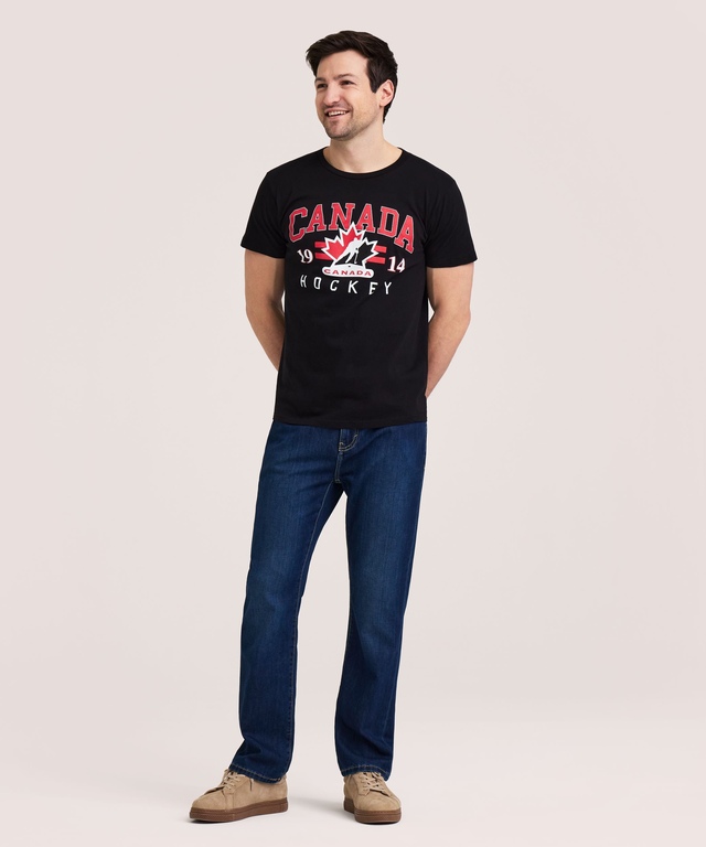 This shirt features a Hockey Canada graphic and short sleeves. It is relaxed for total comfort and lightweight to keep you cool all day. Crafted with durability in mind, this men's t-shirt stands up to repeated washing without losing its shape.