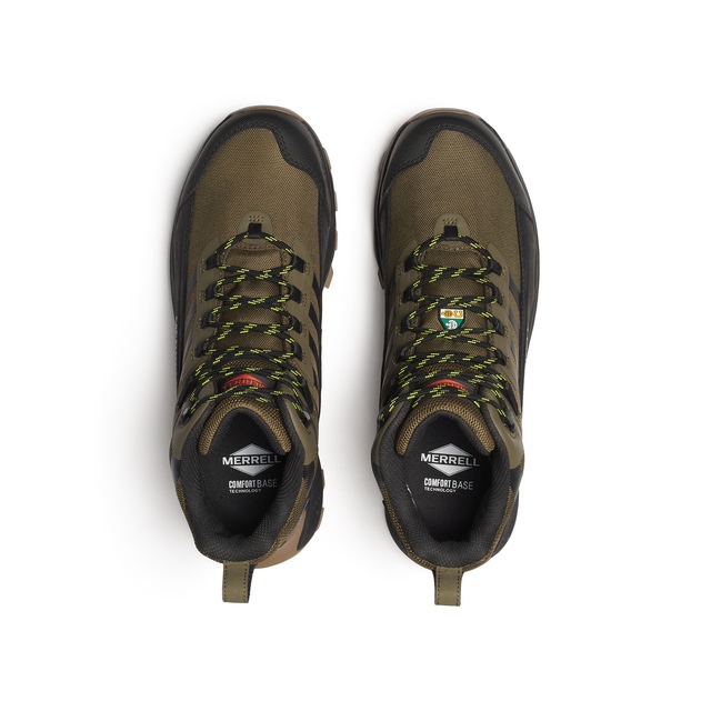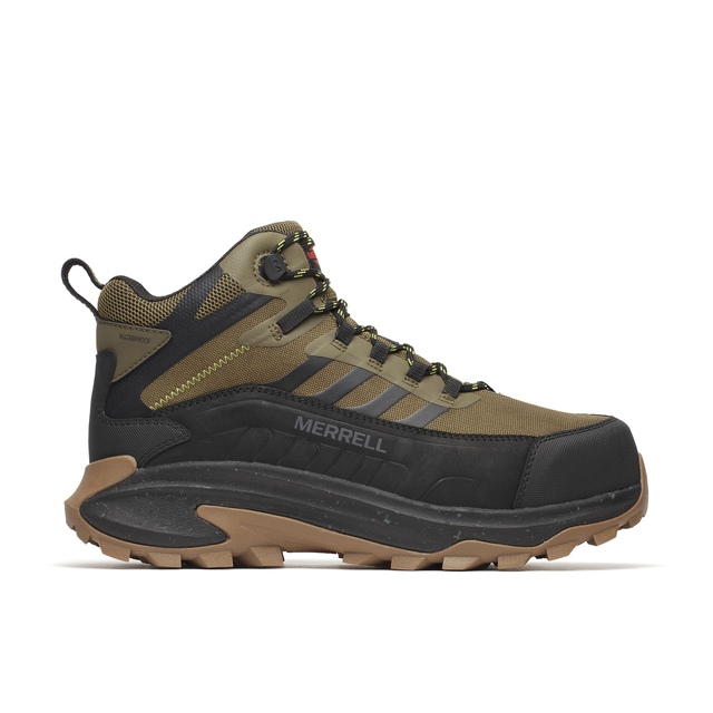 This Merrell Work Men's Moab Speed 2 Fx Waterproof Composite Toe/Composite Plate Medium Cut Hiker features a waterproof membrane that seals out water and lets moisture escape. These men's hiking shoes offer a mesh upper, along with 100% recycled laces and webbing to provide durability and sustainability. A bellows tongue keeps out debris, while the abrasion-resistant synthetic heel and toe cap offer added comfort and protection. The carbon fiber safety toe offers protection and is rated CSA Z195-14, and the electrical hazard (EH) protection is also rated CSA Z195-14.