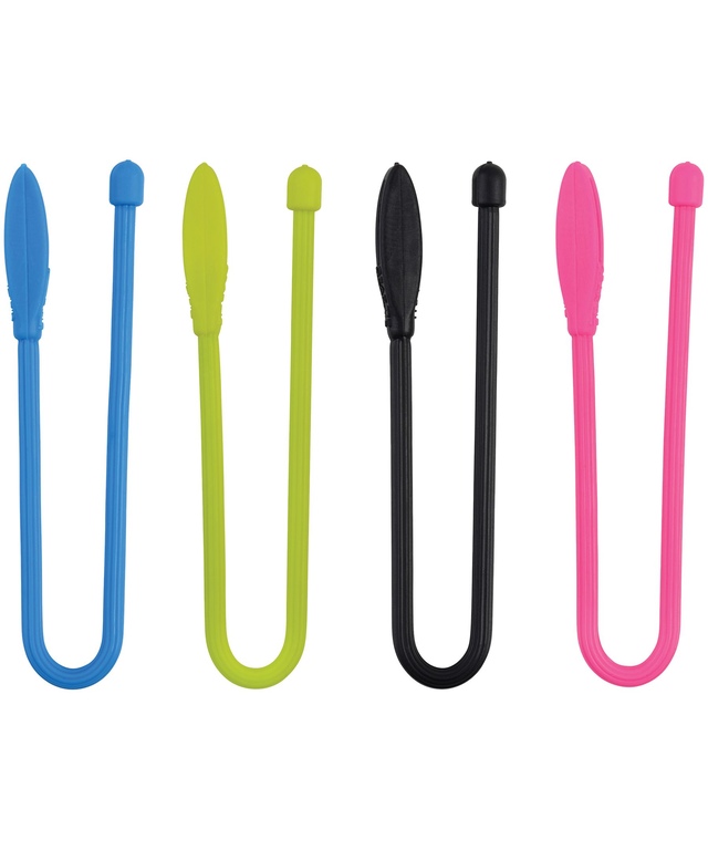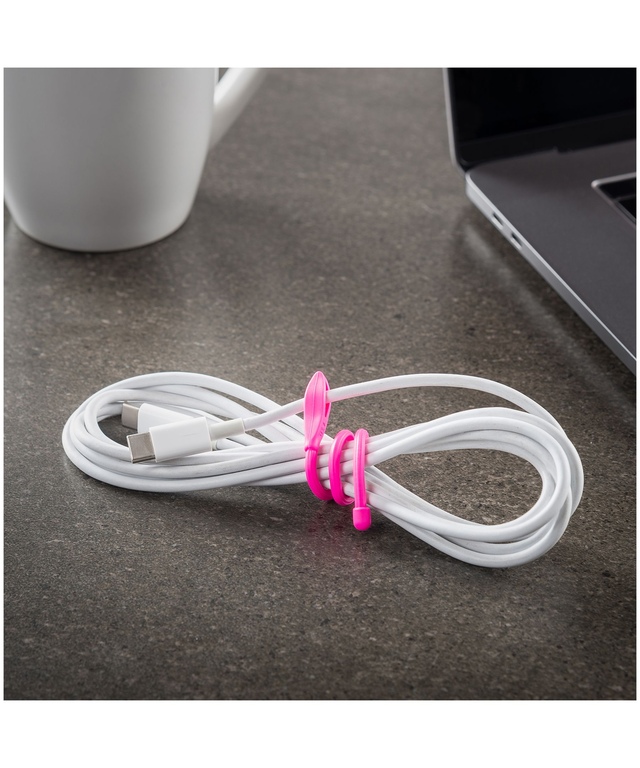 The Nite Ize Gear Tie Cordable Twist Tie keeps ear buds and electronic cords from tangling. The slim tie has a stretchy loop on one end, allowing it to stretch over the end of your cords, staying there until you want to wrap them up. The loop stretches over USB cords and comes in various colours for colour coding. The 6" size is ideal for wrapping laptop, longer USB, and other charging cords.