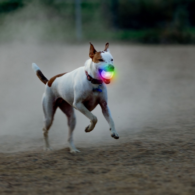 Use the Nite Ize GlowStreak Wild LED Ball to give your pet the exercise he needs. This rugged rubber ball features easy-grip unique ridges that cause the ball to bounce in a wild new direction with each throw. Your pup will stay engaged and focused throughout the game. The ball contains an innovative motion-activated module with colour-changing Disc-O LEDs powered by two replaceable batteries (included).