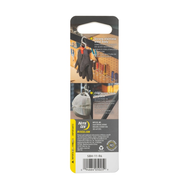 The Nite Ize S-Biner® Hook 'N Hold™ S-Hook is a versatile clip for securing all sorts of things around the home and office. It's easy to use and strong enough to hold items weighing up to 75lbs.