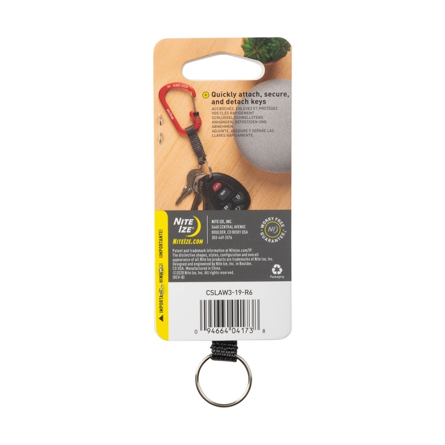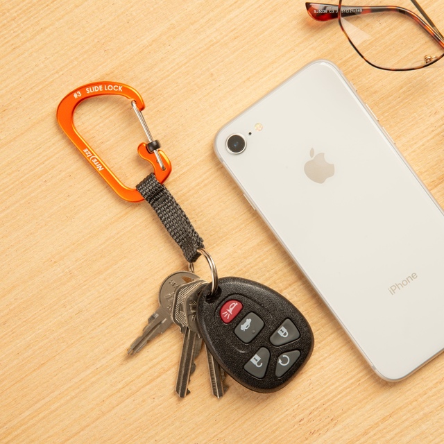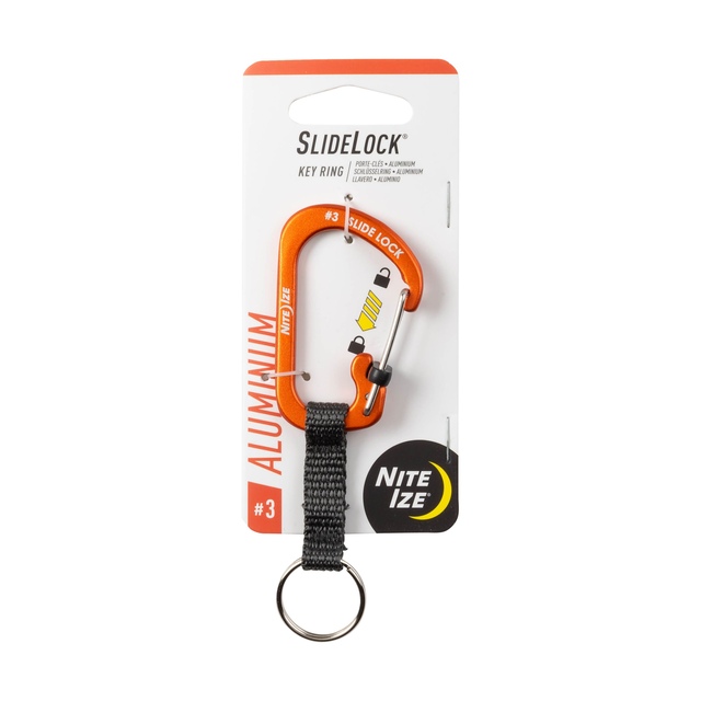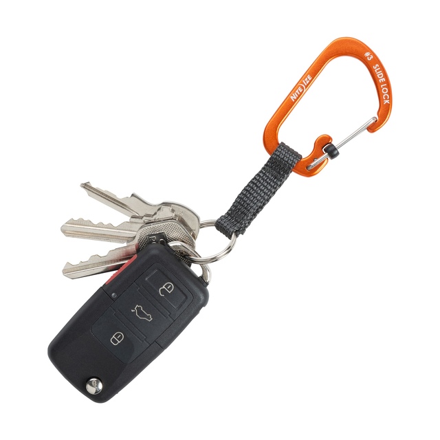 Keep all your keys together using the Nite Ize Slidelock Key Ring. It consists of a secure, solid aluminum #3 SlideLock Carabiner and a durable key ring joined with a strong nylon webbing strap. You can easily clip it to a belt loop or backpack, knowing that it will hold on securely.