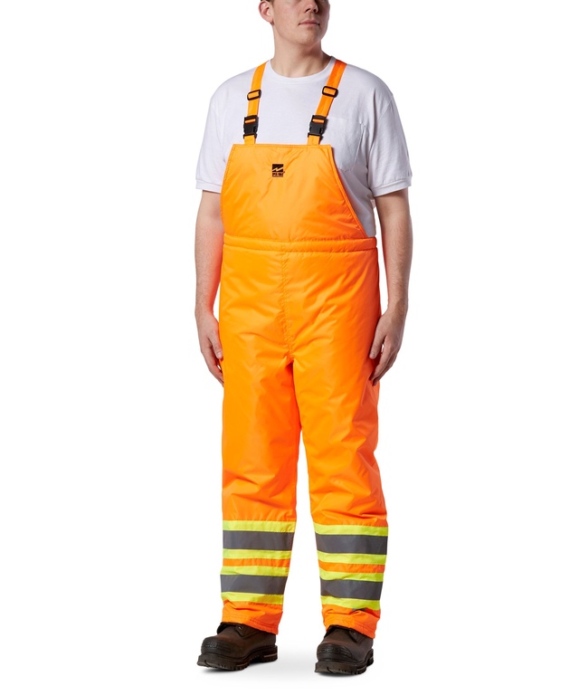 These hi-vis insulated bib pants are constructed in a lightweight ripstop fabric that remains flexible, even in cold weather conditions. Windproof and waterproof to keep you dry, the men's work pants also keep you warm when temperatures get as low as -30°C. The waist is elasticated at the back and the suspenders are adjustable; crossed at the back, they stay comfortably put on your shoulders. These men's pants comply with CSA Z96-15 Class 2, Level 2 standards. And, if you wear them with the coordinating jacket (available separately), they are Class 3 compliant.