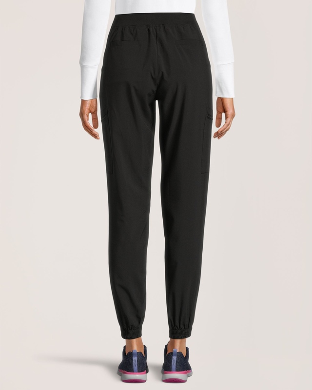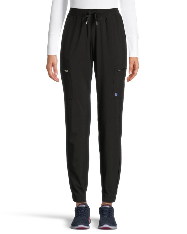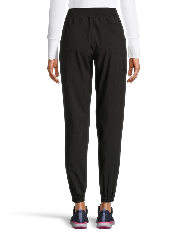 Stay comfortable during your shift wearing these Scrubletics women’s scrub pants. The sporty style is made from soft polyester fabric, with added stretch for easy mobility. These jogger-style pants have an easy pull-on waist with a shoelace-style drawcord. A pair of side-front pockets, back pockets and zippered cargo pockets provide space for small essentials.