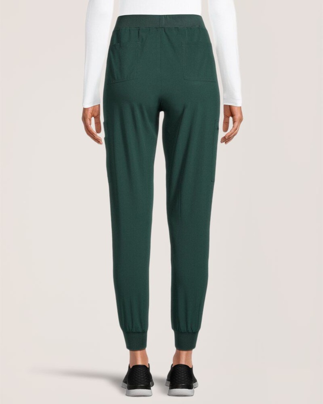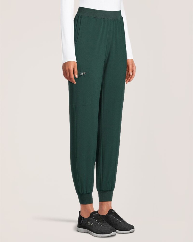 From Scrubletics, these women's jogger scrub pants are made of four-way super stretch fabric for maximum agility and movement. They have seven pockets and a mid-rise elastic waist with a drawstring for a secure fit during active movement.