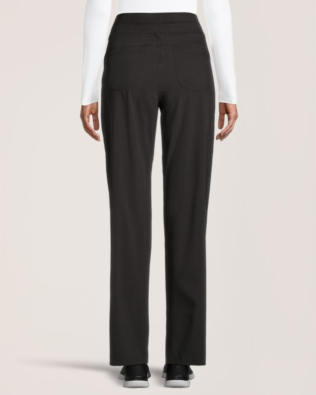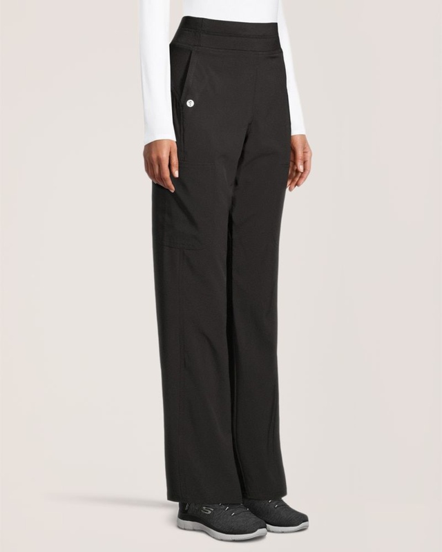 Designed with a yoga-inspired waistband, these women's scrub pants ensure a secure and comfortable fit that adjusts to the body's movements. The inclusion of two front pockets, two cargo pockets (including a zippered pocket), and two back patch pockets provides practical and ample storage solutions.