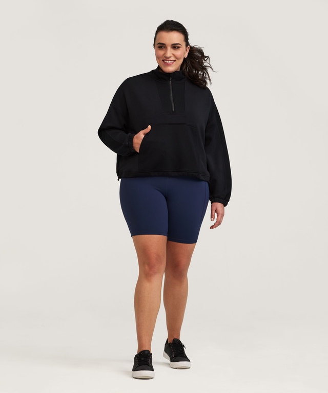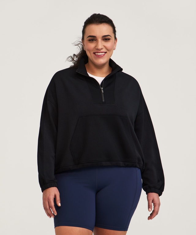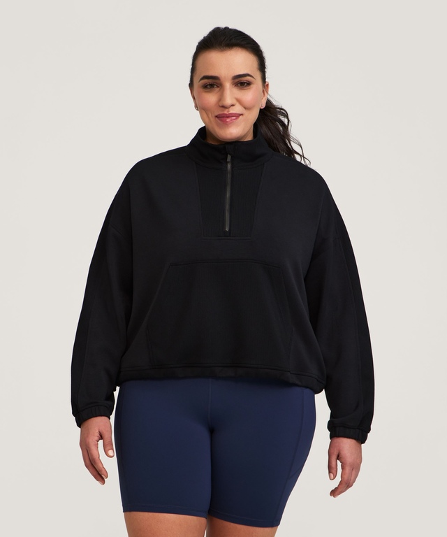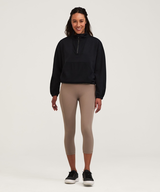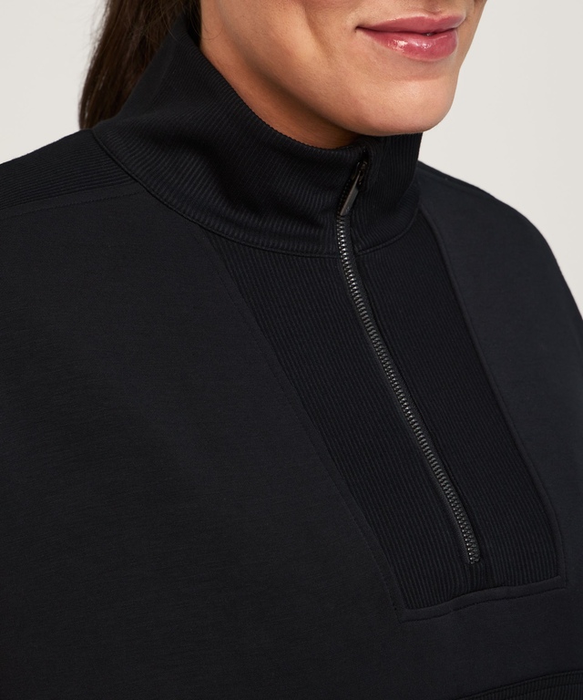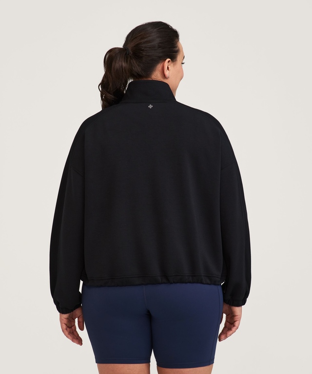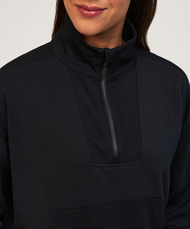 When it's time for a little relaxing me time, you'll love this Shambhala pullover. Beautifully designed with matching geometric elements, it features a mock neck and a cozy kangaroo pocket. A bungee cord at the waist makes it easy to adjust the fit.