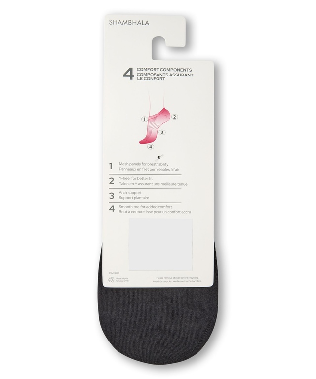 If you prefer the barefoot look but the comfort of socks, these Shambhala socks are for you. Available three pairs to a pack, these sneaker-cut socks are made of a breathable cotton blend with multiple comfort features. Smooth toe seams won't cause chafing, arch panels add support and Y-heels give you a better fit. Silicone heel grippers keep the socks in place.