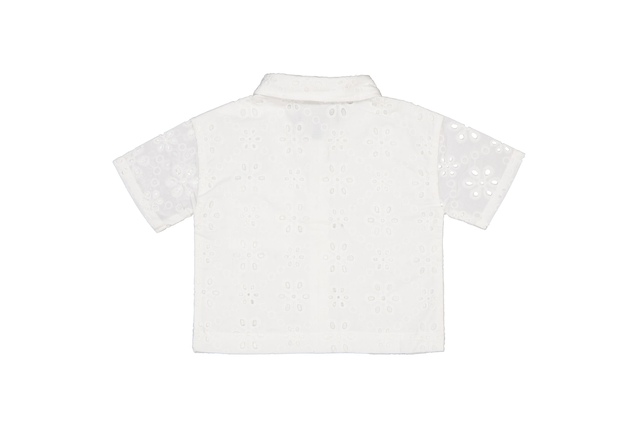 Top: Relaxed cropped fit, point collar, branded buttons, single front pocket and short sleeves
