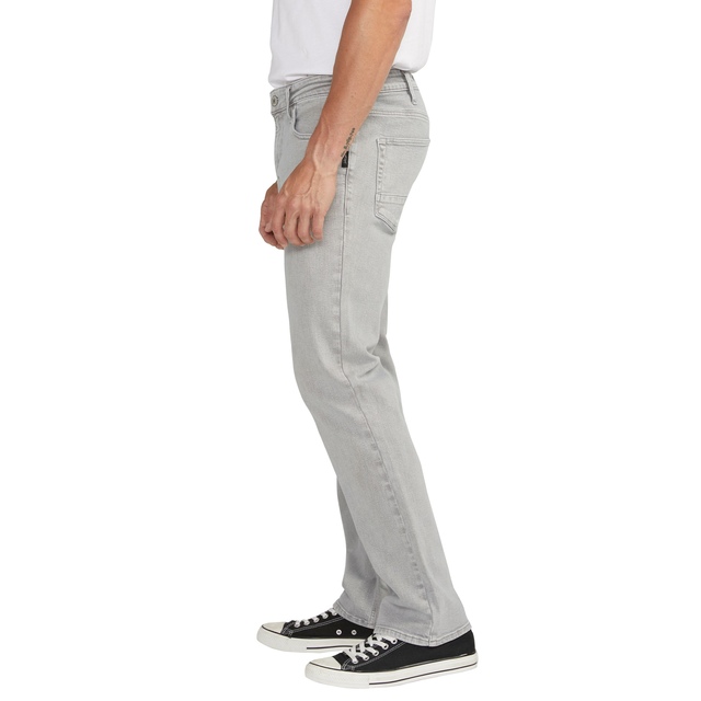 From Silver Jeans, Allan Slim Fit Straight Leg Jeans - the style that looks good on every guy. Allan is a slim take on the classic straight-leg jeans design. It sits just below the waist with a slim fit through the hip and thigh that loosens at the knee.