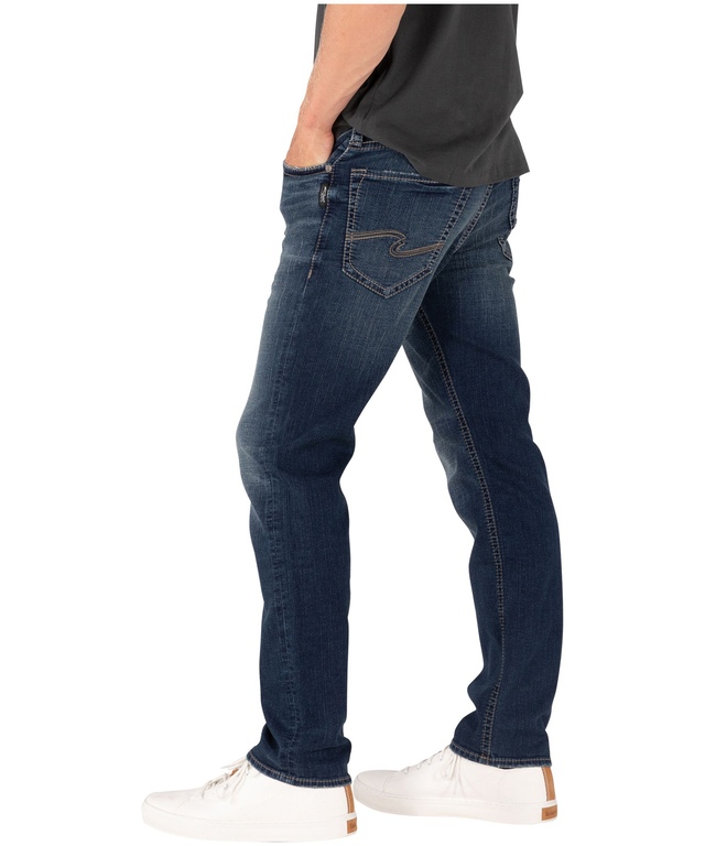 Eddie is for guys who want a modern fit but need more room in the thighs. It features a Athletic Fit that tapers below the knee for a clean look. This pair's crafted with Silver Jeans' ultimate stretch denim that looks like traditional denim but feels like your most comfortable sweats. Finished with a dark indigo rinse and modern tapered leg, making it perfect for dressing up or down.