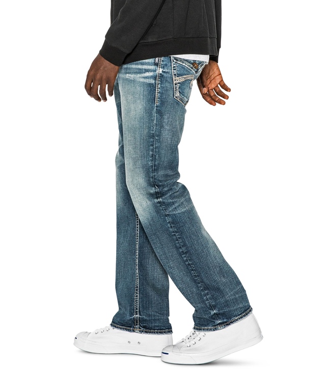 Perfect for larger builds, Gordie sits at the waist and features an extra loose fit through the hip and thigh. This pair's crafted with Silver Jeans' go-to comfort stretch denim that has just the right amount of stretch for everyday wear. It features a dark indigo resin wash with a taupe tint that'll never fade, plus mismatched copper and tin hardware for an authentic vintage look. The jeans are finished with a tonal, multi-row stitched back pocket and classic straight leg.