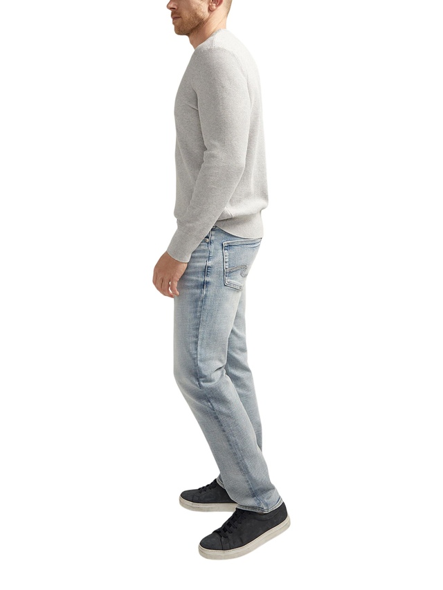 Offering a sleek and streamlined look from hip to ankle, these Silver Konrad jeans have a straighter slim fit. Made with Luxe Heritage denim, these jeans sit below the waist and provide just enough room for comfort through the hip and thigh. They're finished with a well-loved faded and whiskered treatment.