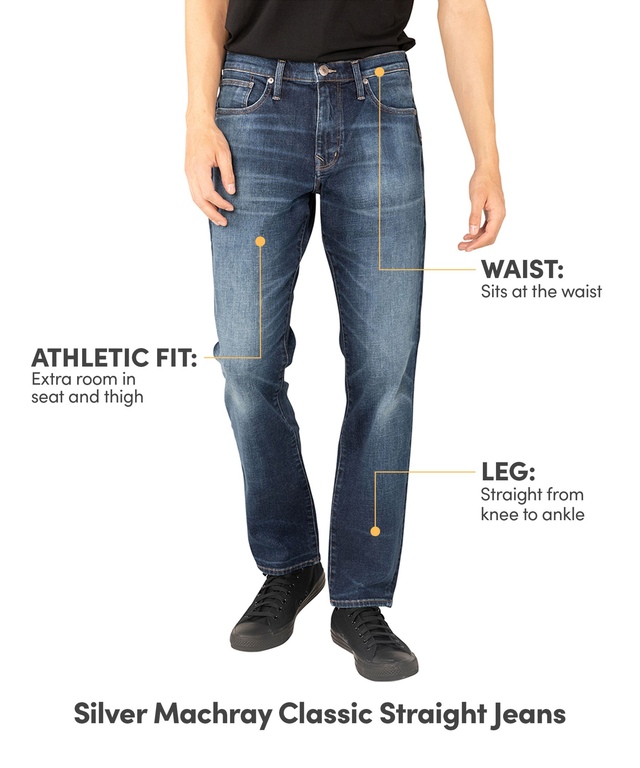 Machray features a classic fit, straight leg and longer rise for a modern yet comfortable look. Always offered in clean, contemporary finishes, this style features a versatile dark indigo wash.