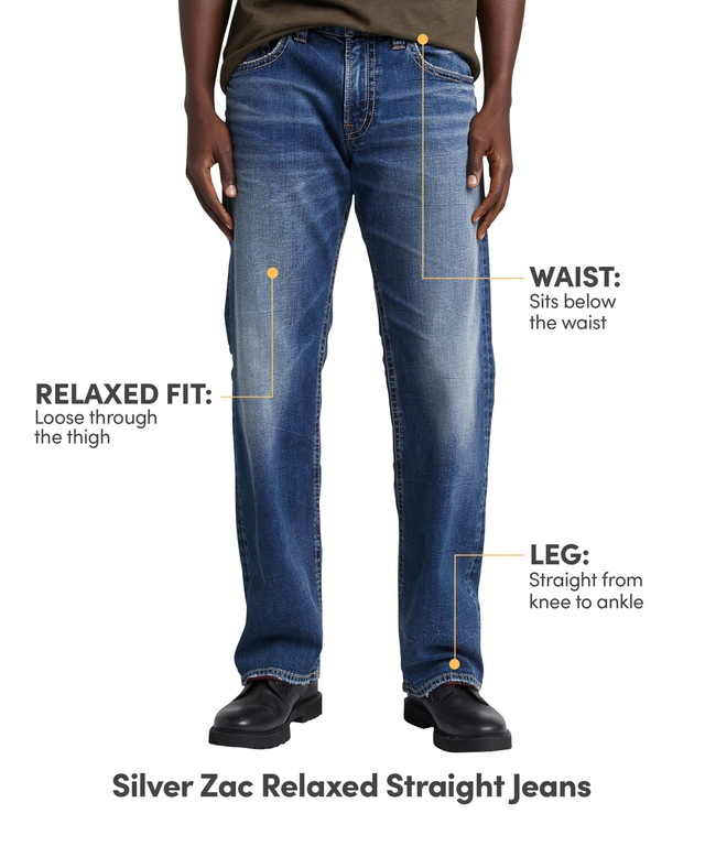 For the guy who wants to be comfortable and look good, Silver Jeans' Zac sits just below the waist and features a relaxed fit through the hip and thigh. They're crafted in the brand's go-to comfort stretch denim that has just the right amount of stretch for everyday wear. Washed to a pure indigo shade, these jeans are finished with s-scrolls on the back pockets and classic straight legs.