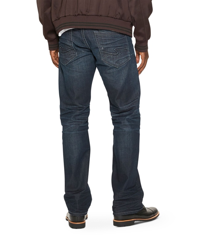 Casual and easy, the Silver Jeans Zac sits just below the waist and features a relaxed fit through the hip and thigh. It’s designed with just a bit of stretch for a comfortable feel. This pair is washed to a dark indigo shade with subtle hand sanding and whisker patterns. The design is finished with a classic straight leg and the brand's tonal s-scrolls on the back pockets.