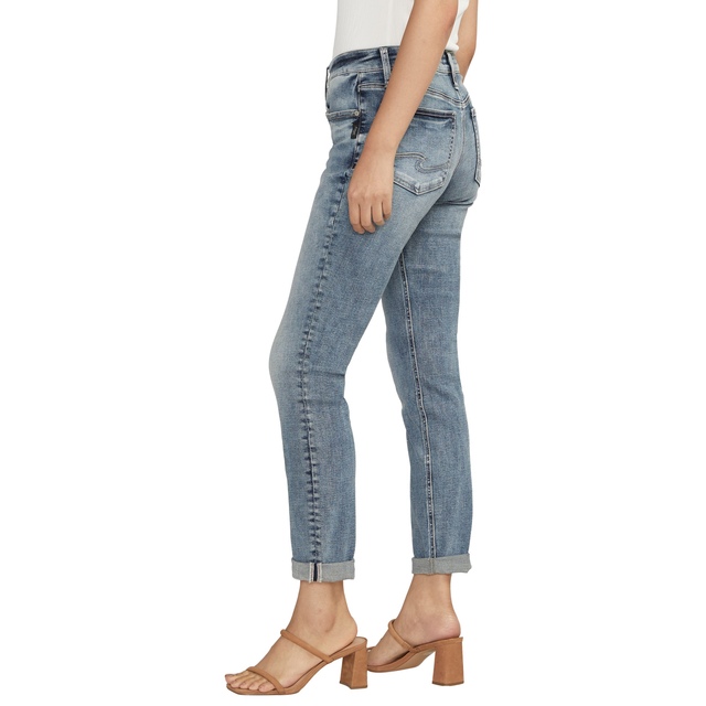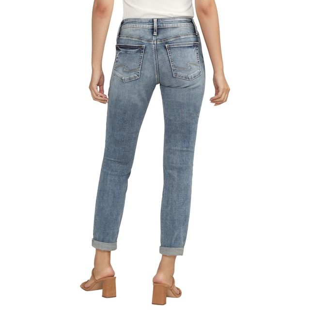 Show off your curves while enjoying a laid-back look and feel wearing these Silver Boyfriend Jeans. They feature a comfortable, classic mid rise and a no-gap fit that’s built for curvy body types. The hip and thigh gives you maximum comfort, while the slim leg creates a flattering silhouette.