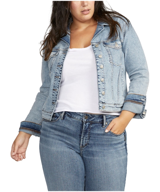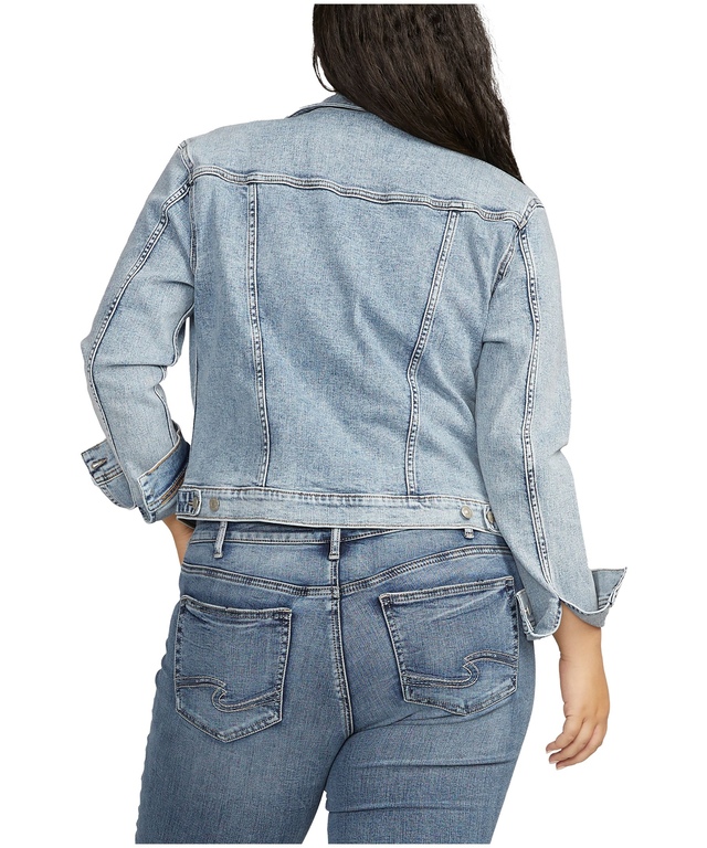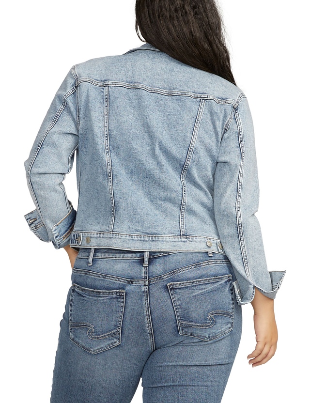 . The Fitted Denim Jacket is a wardrobe essential you’ll layer all year long. This Silver Jeans style features a signature fit, a pointed collar, flap chest pockets and welt hip pockets. The form-fitting silhouette is classic and flattering, making it the perfect finish to your everyday looks.
