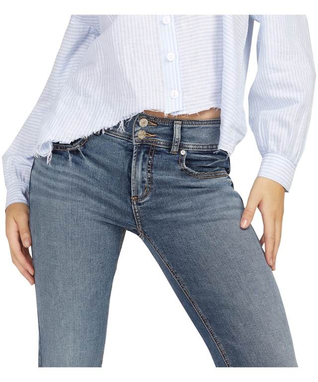 Suki is the best-selling Silver Jeans Co.™ curvy fit for good reason. Designed to enhance curves, this pair creates a flattering silhouette with ease in the hip and thigh to hug every angle. The classic mid rise is comfortable, and the contoured waistband ensures a zero-gap fit.