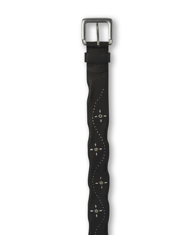 From Silver Jeans, this genuine leather belt has a perforated pattern with stud detail and an antique nickel-finished harness buckle. The perfect complement for your Silver jeans.