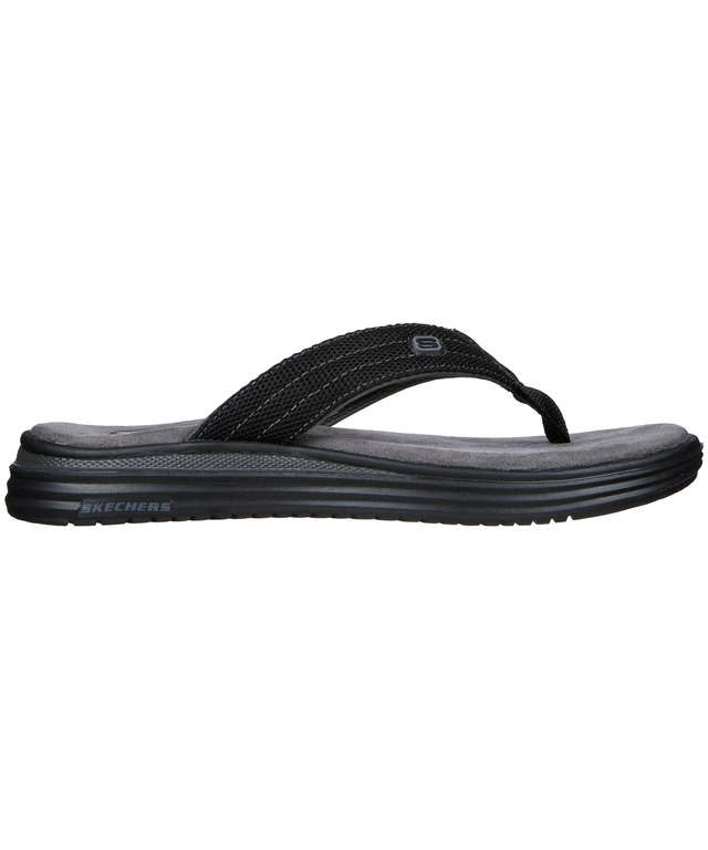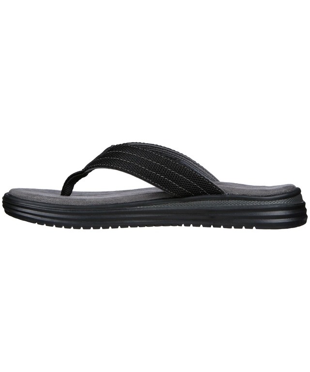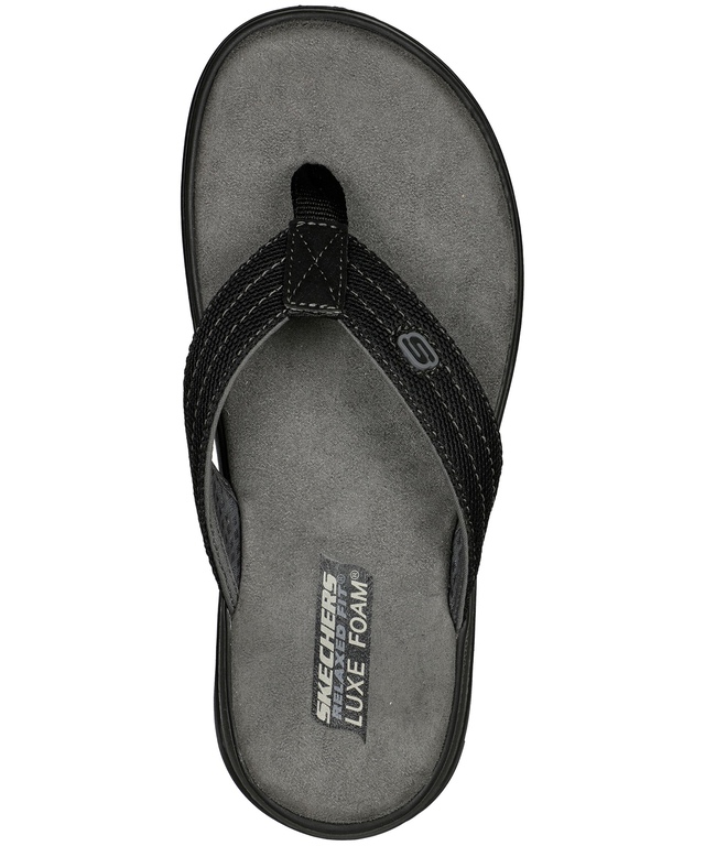 Enjoy sunny-weather comfort and classic style wearing Skechers Relaxed Fit®: Proven SD - Baylis thong sandals. These sandals feature webbed fabric uppers with Luxe Foam® footbeds and cushioned midsoles.