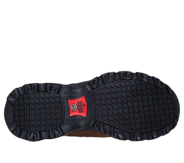 Skechers Athletic safety shoes feature the brand's Slip-Ins® technology that offers pure comfort and convenience. They also sport the Exclusive Heel Pillow to hold your foot securely in place. These shoes meet CSA Grade 1 standards with composite toes and puncture-resistant plates.
