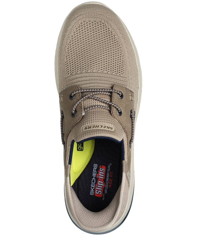 Quick and Easy to get on, Skechers Hands Free Slip-ins®: Delson 3.0 - Roth shoes are ready to go when you are. Designed with the brand's exclusive Heel Pillow™ they feature engineered knit and synthetic uppers with stretch laces, Skechers Air-Cooled Memory Foam® comfort insoles and Goga Mat Arch™ cushioning for added support.