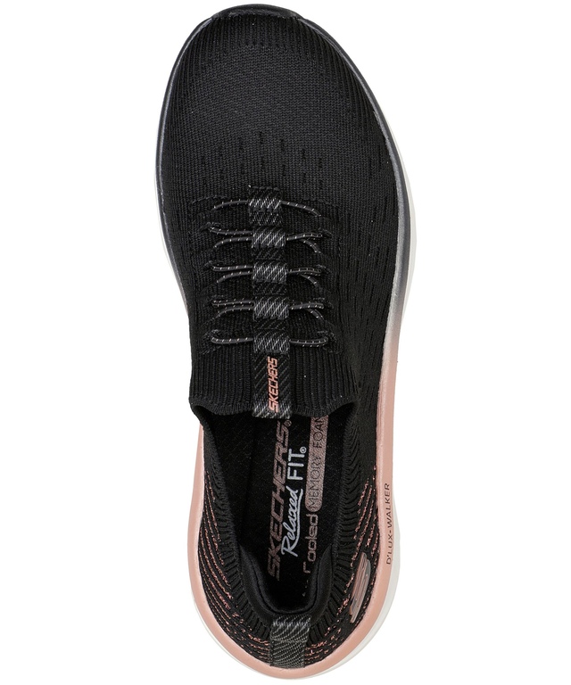 Glam style and well-cushioned comfort combine in Skechers Relaxed Fit®: D'Lux Walker™ - Let it Glow shoes. These slip-ons feature Stretch Fit® metallic engineered mesh uppers with stretch laces, Skechers Air-Cooled Memory Foam® insoles and cushioned platform midsoles.