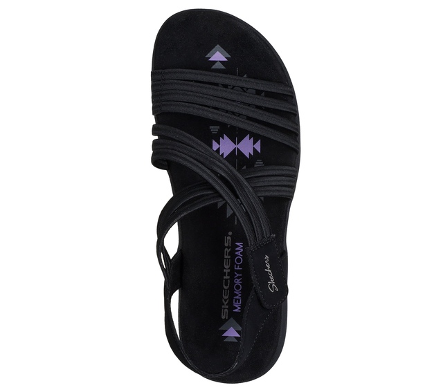 The Skechers Women's Reggae Slim Sandal will make your style stand out. This slim sandal features a synthetic and soft Stretch Fit® fabric upper for a secure fit. Complete with an adjustable strap, and a cushioned Skechers Memory Foam® footbed for ultimate comfort.
