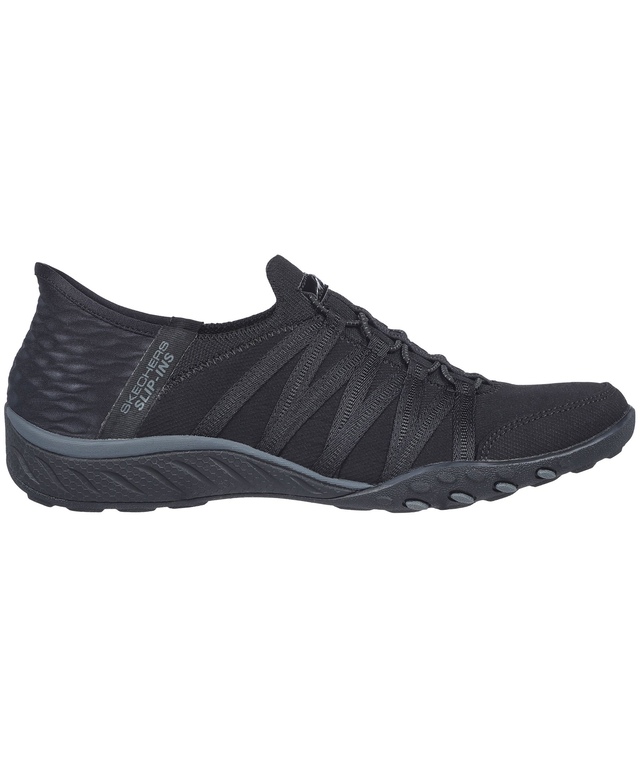 With these Skechers Hands Free Slip-ins® Relaxed Fit®: Breathe-Easy - Roll-With-Me shoes, you can simply step-in and go. Designed with the brand's exclusive Heel Pillow™, this TOUCHLESS FIT® style features a soft knit mesh upper and a cushioned Skechers Air-Cooled Memory Foam® insole.
