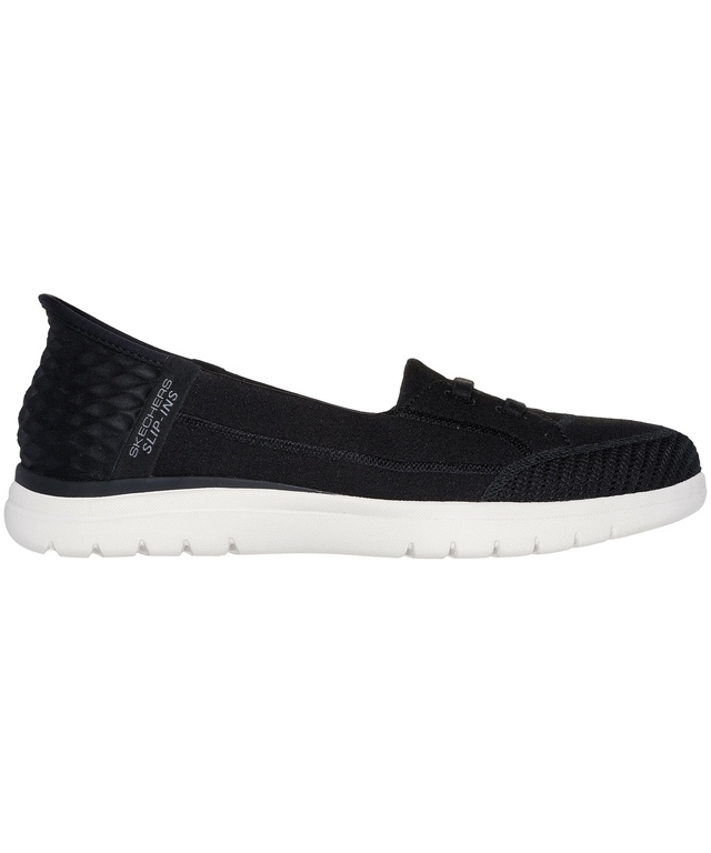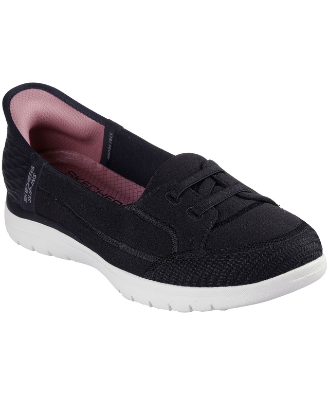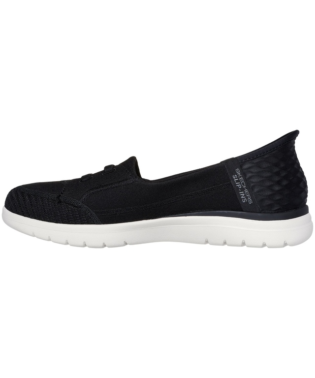 Enjoy stylish comfort wearing Skechers Hands Free Slip-ins®: On-the-GO® Flex - Top Notch Shoes. With the brand's exclusive Heel Pillow™ designed to keep your foot securely in place, this laceless style features a woven fabric and mesh upper with a Skechers Air-Cooled Memory Foam® comfort insole and a lightweight ULTRA GO® cushioned midsole.