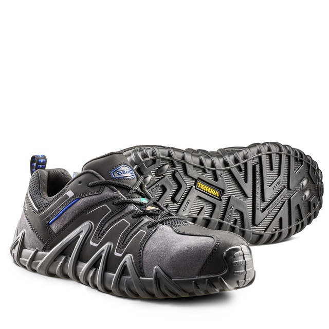 The Terra Men's Spider 3.0 Safety Shoe is designed to keep you safe and comfortable on tough jobs and long days. This safety shoe features a sturdy, slip-resistant outsole and composite toe protection to protect against hazards while providing all-day comfort. The lightweight design and breathable upper reduces foot fatigue.