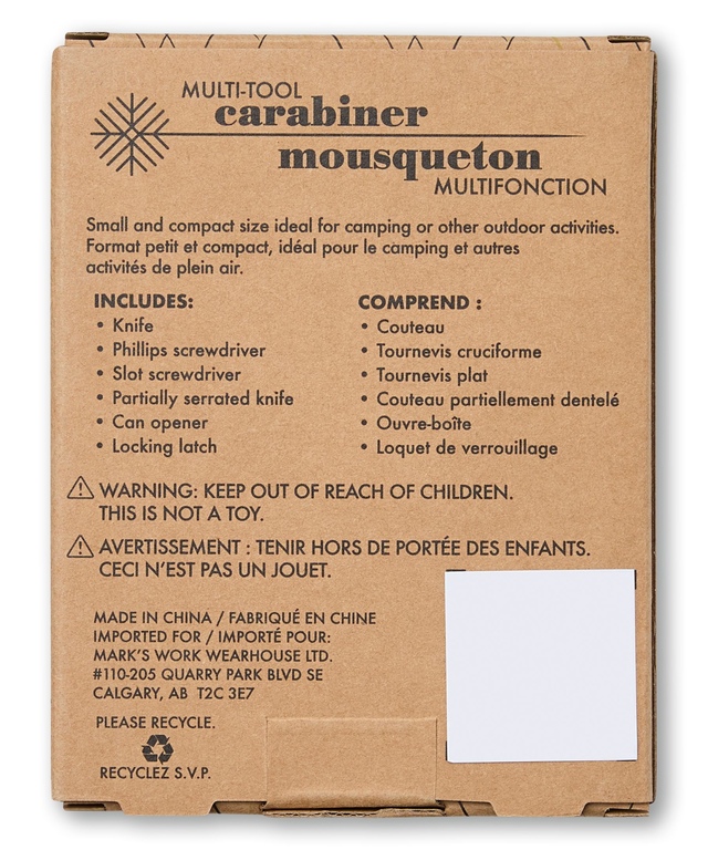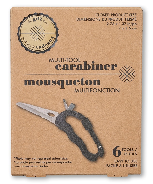 This carabiner tool is small and portable, and includes six convenient tools made of aluminum alloy and stainless steel. It's an ideal multi-tool for keeping handy in your vehicle's glove compartment or in your pocket when you're out and about.