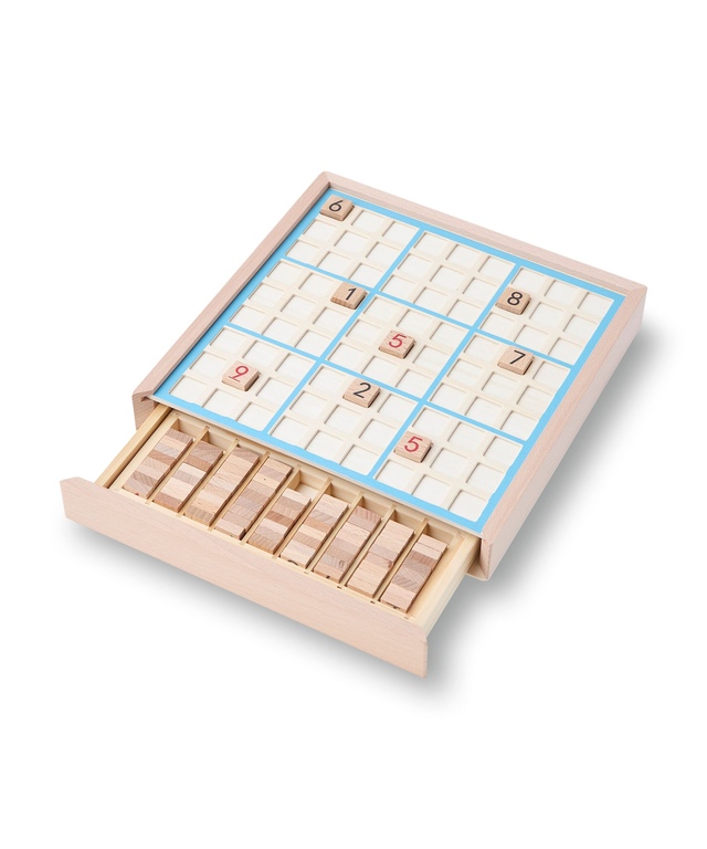 Includes: Wooden Sudoku game board, 81 number tiles, Built-in storage drawer and instruction sheet