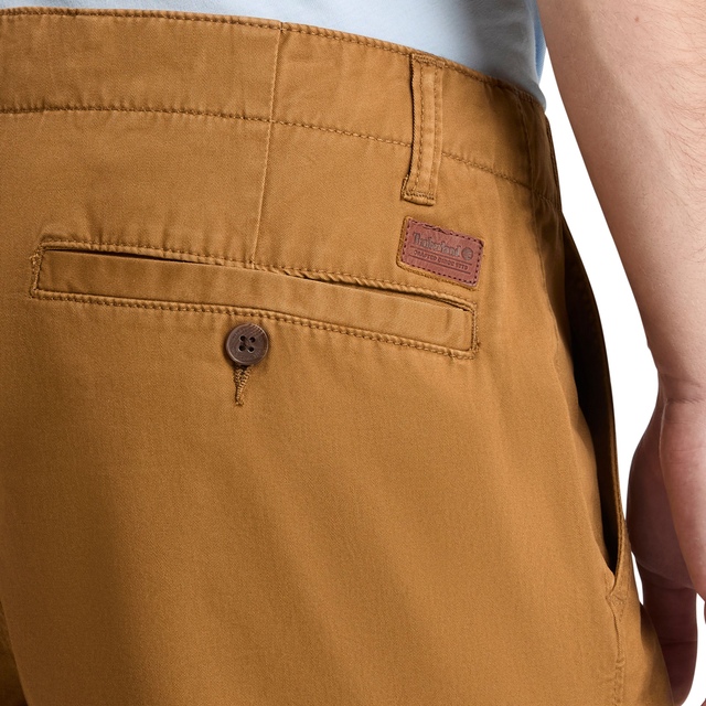 This stylish Timberland Men's Brookline Twill Stretch Cargo Shorts feature storage for your essentials with cargo pockets, side pockets, and two back pockets. It also features a relaxed fit, button-and-fly closure, and a leather badge for comfortable wear in style.