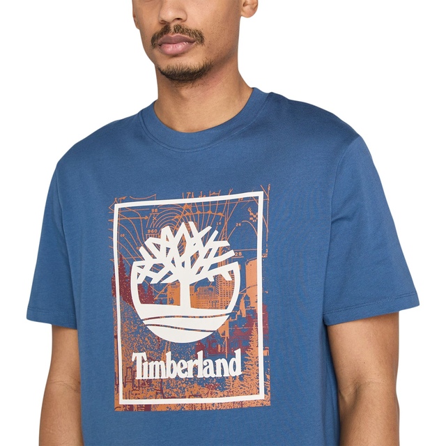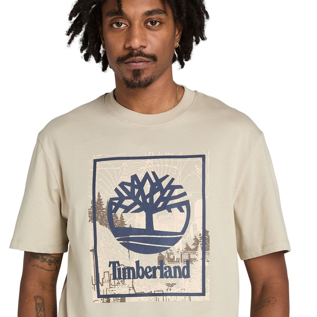 Get out and enjoy the sun in the Timberland Men's Camo Tree T-Shirt. Featuring a front seasonal stack logo graphic, this t-shirt features an authentic fit and a printed tree logo on the front. The crew neck and knit fabric provide comfort.