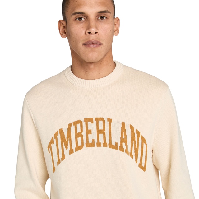 This winter, enjoy cozy comfort with the Timberland Men's Graphic Cotton Sweater. Made with 100% cotton for breathable comfort and a knit fabric for enhanced durability. Its regular fit, along with a Jacquard logo on the front, offers a classic and iconic appearance.