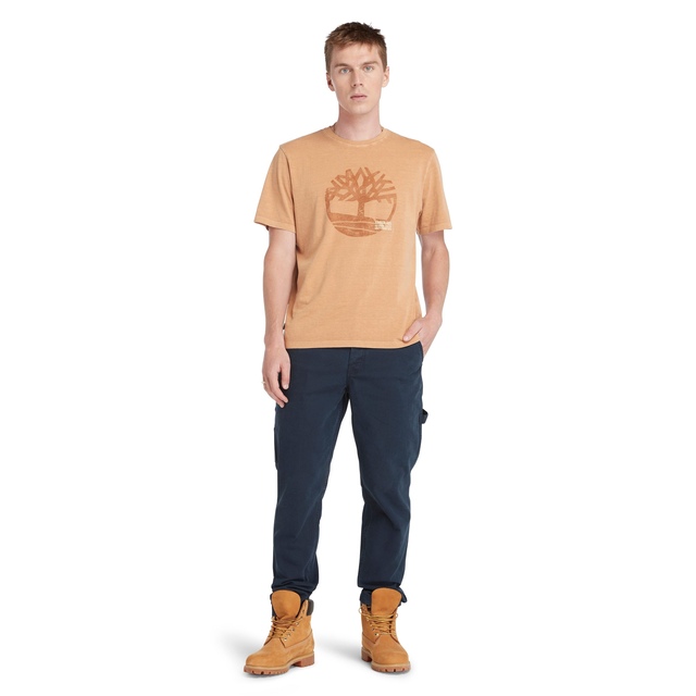 Enjoy the soft comfort of this Timberland garment dyed T shirt in breathable cotton. It's classically styled and features the brand's iconic tree logo on the front.