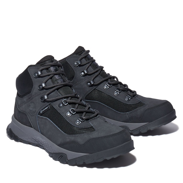 Timberland Lincoln Peak mid-hikers boast a reinforced toe bumper and heel piece for durability, a lightweight cushioned midsole for maximum comfort, and waterproofing and lining materials crafted from 50% recycled plastic diverted from landfills.