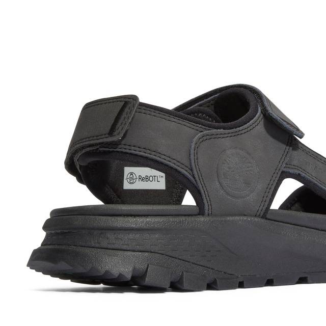 For long-term comfort, these Timberland Lincoln Peak premium leather sandals have plenty of cushioning underfoot and a convenient hook-and-loop closure. The ReBOTL™ fabric lining contains at least 50% recycled plastic to help our planet's sustainability.