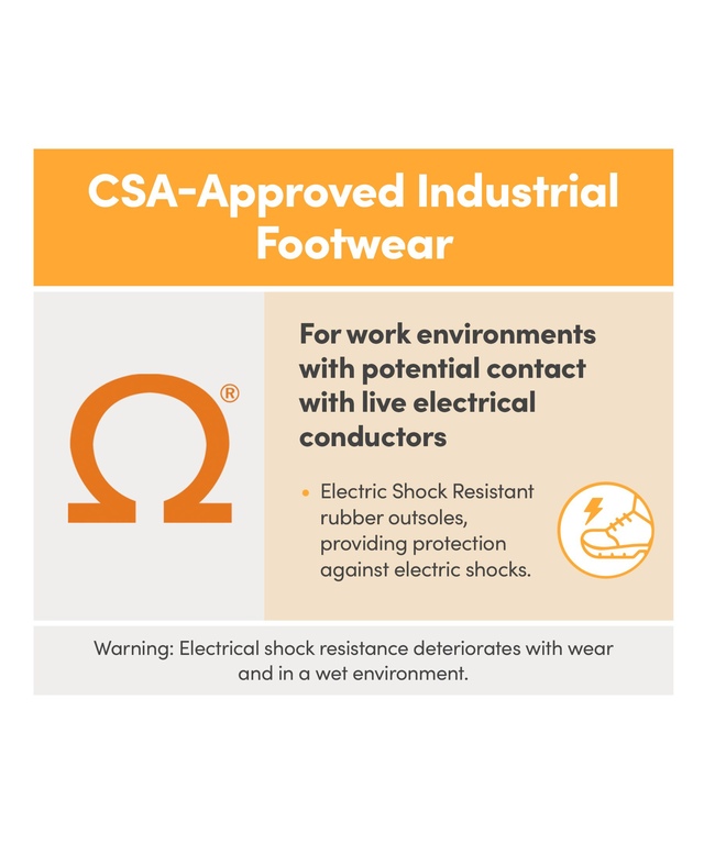 | CSA Features | Composite Toe,Grade 1 Protective Toe,Steel Plates,Electric Shock Resistant |