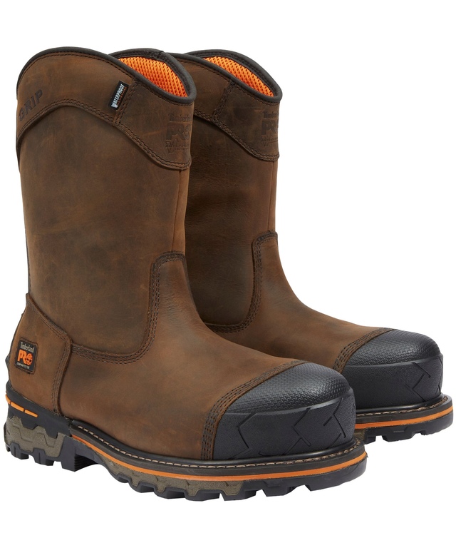 Timberland PRO designed these heavy-duty insulated Boondock manufacturing boots to provide industrial-grade protection. They’re constructed in waterproof leather with an internal waterproof, breathable membrane for maximum waterproof protection and resistance to blood-borne pathogens. These boots are fitted with molded Timberland PRO® rubber toe protectors and rigid external heel cups They have footbeds with Anti-Fatigue Technology and meet industry standards for composite toes and plates. All-Weather TPU outsoles are heat-resistant up to 120 degrees Celsius, as well as slip-, oil, and abrasion-resistant.