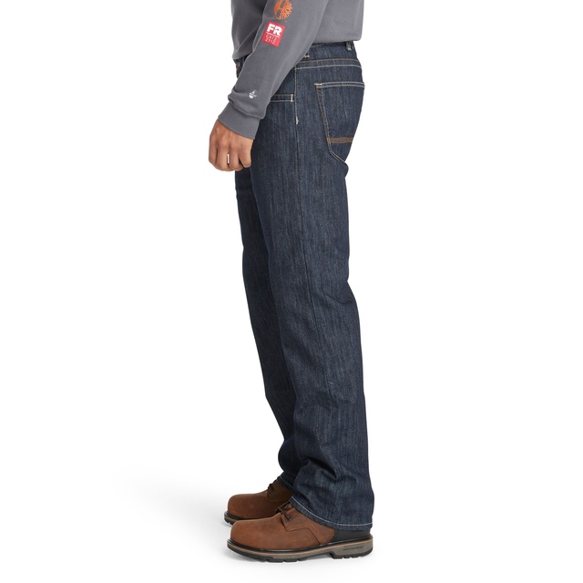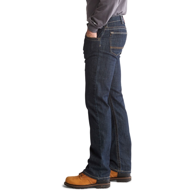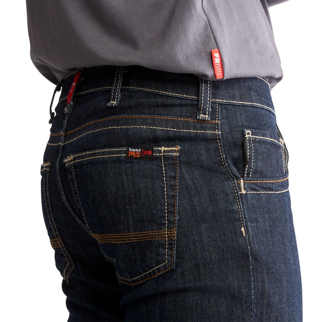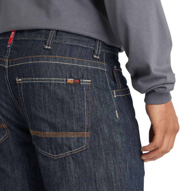 From Timberland PRO, these Grit-n-Grind flame-resistant work jeans are made from lightweight, moisture-wicking, quick-drying denim with durable heavy-duty seams. Along with the flame-resistant denim, they have an arc-resistant button closure for added safety. The bootcut design is slightly tapered in the thigh area and wider from knee to hem, making them fit perfectly over your work boots.