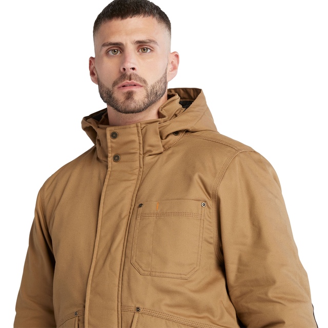 The highly durable Timberland PRO® Ironhide work jacket is reinforced and built for a full range of motion. It's insulated against cold weather and water resistant to keep you dry in light rain.