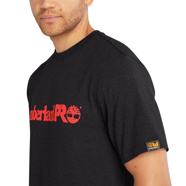 Soft as well as durable, this Carhartt short-sleeve tee features a Timberland PRO® graphic on the chest. The brand's original fit gives you more room to move throughout the shoulders, chest, waist and sleeves. This T-shirt has an antimicrobial treatment that helps prevent and control odours at work and beyond.