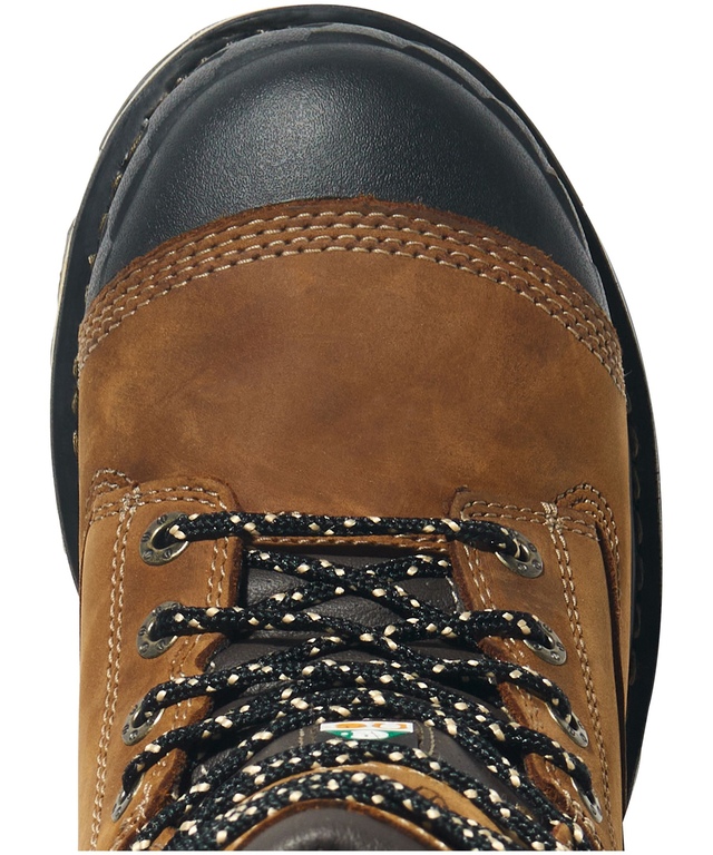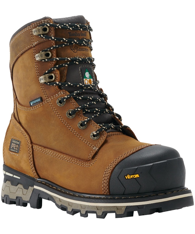 From Timberland Pro, these Boondock safety boots are made of tough, waterproof leather for durability. Rubber elements at the toe and heel provide added protection. These boots have been built with anti-fatigue technology and safety features meet CSA Grade 1 standards.