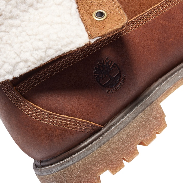 These Timberland® Waterproof Roll-Top Boots are crafted with Premium Timberland® Leather and teddy fleece linings for comfort as well as style. They offer support with anti-fatigue removable insoles and rubber midsoles. The waterproof membrane and rubber lug outsoles help keep you dry and comfortable.