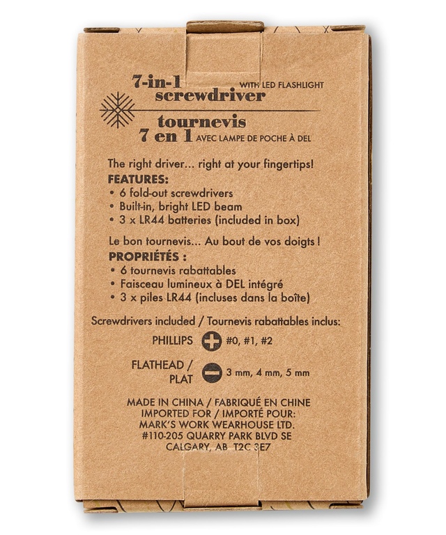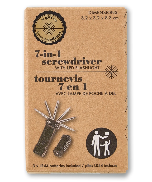 Features: 6 fold-out screwdrivers with a built-in bright LED beam